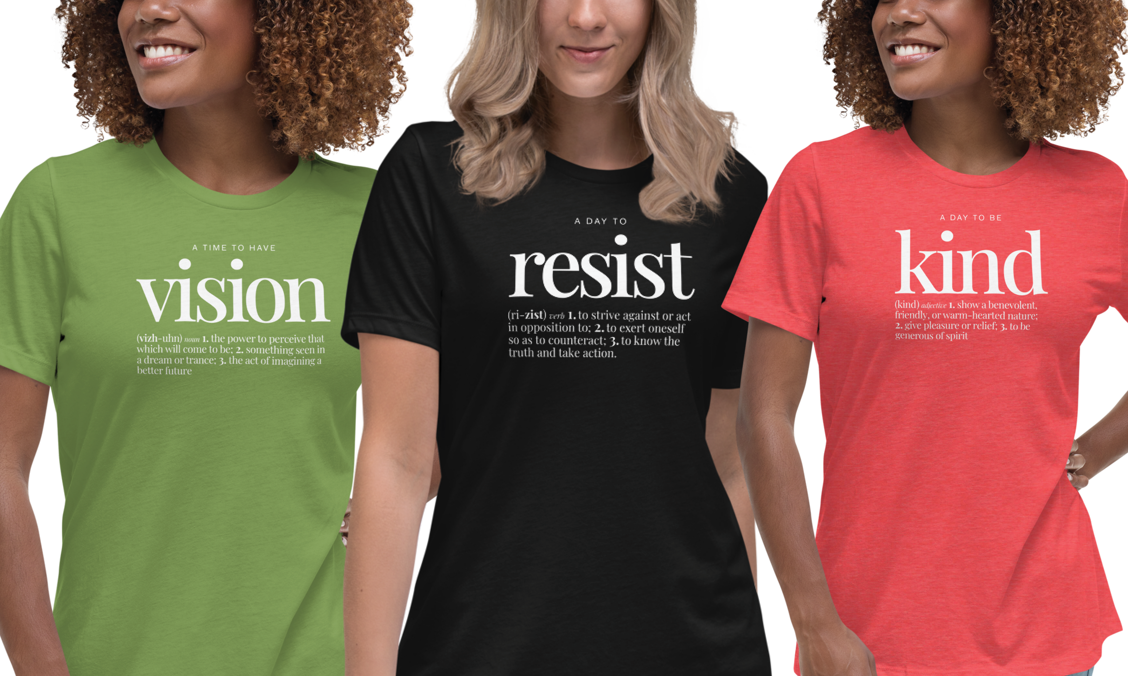 Let's face it, our planet, democracy, social justice—even kindness—are under siege. But we are not powerless. T-shirts and hoodies may not save the world but my hope is that they lift your spirits and inspire you to take action—no matter how small. Thank you and may we create a better world together.